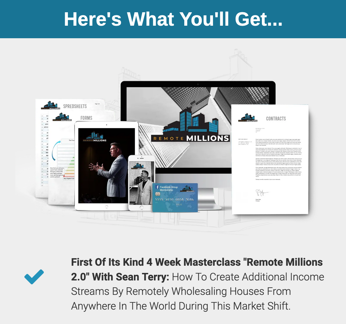 DISCLAIMER: Sean Terry and students talked about in the webcast and/or this page, have had unusual success with real estate. Most of the people who follow our techniques do not apply his strategies therefore do not make any money. Don't let that happen to you. Take what we learn and take action with it!